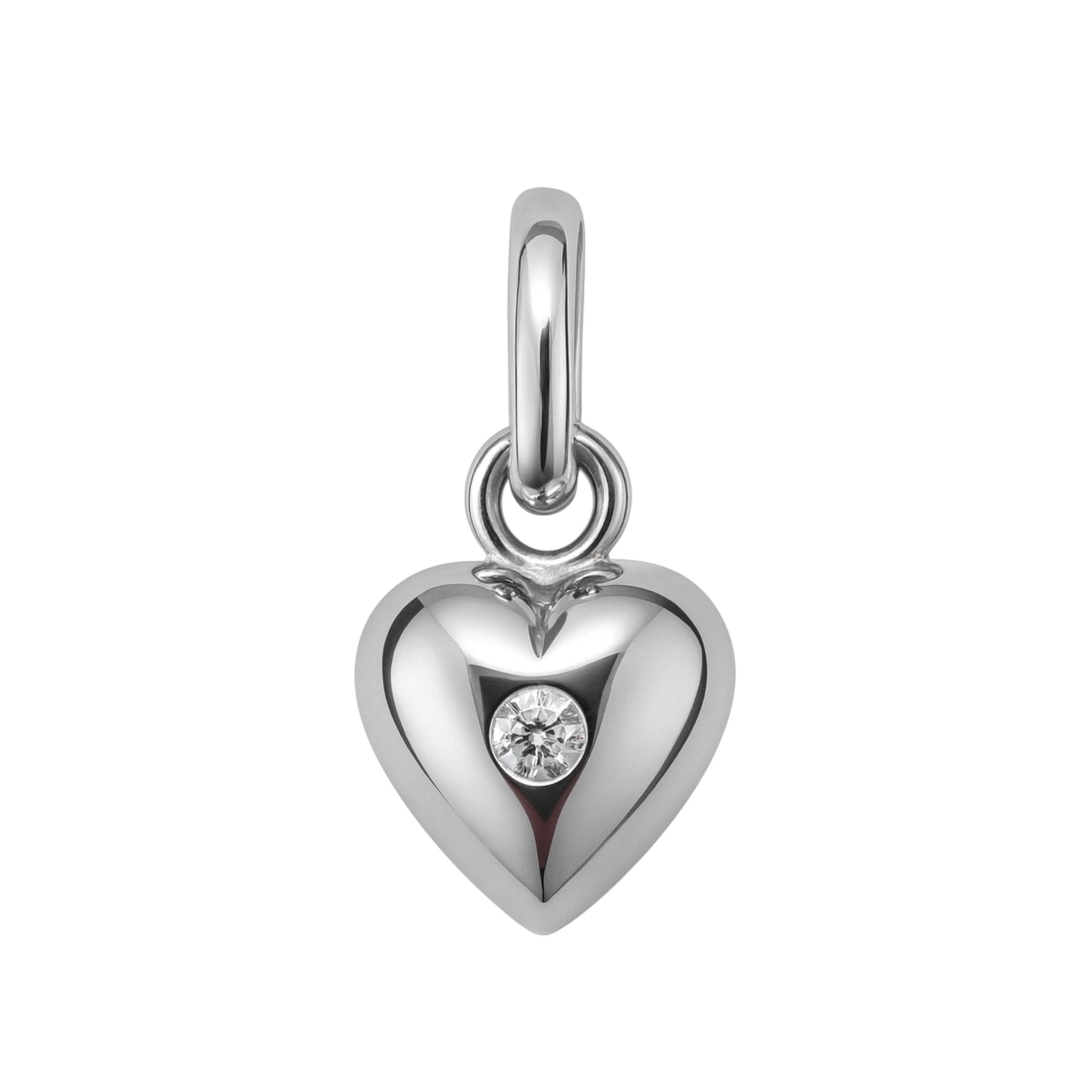 I hjertets centrum er indfattet en brillant på 0,03 ct TW/VS, som tilfører smykket en funklende detalje og et elegant lysende fokuspunkt. Kombinationen af det solide guld og diamantens klare glans gør dette hjerte til et både klassisk og tidløst smykke.