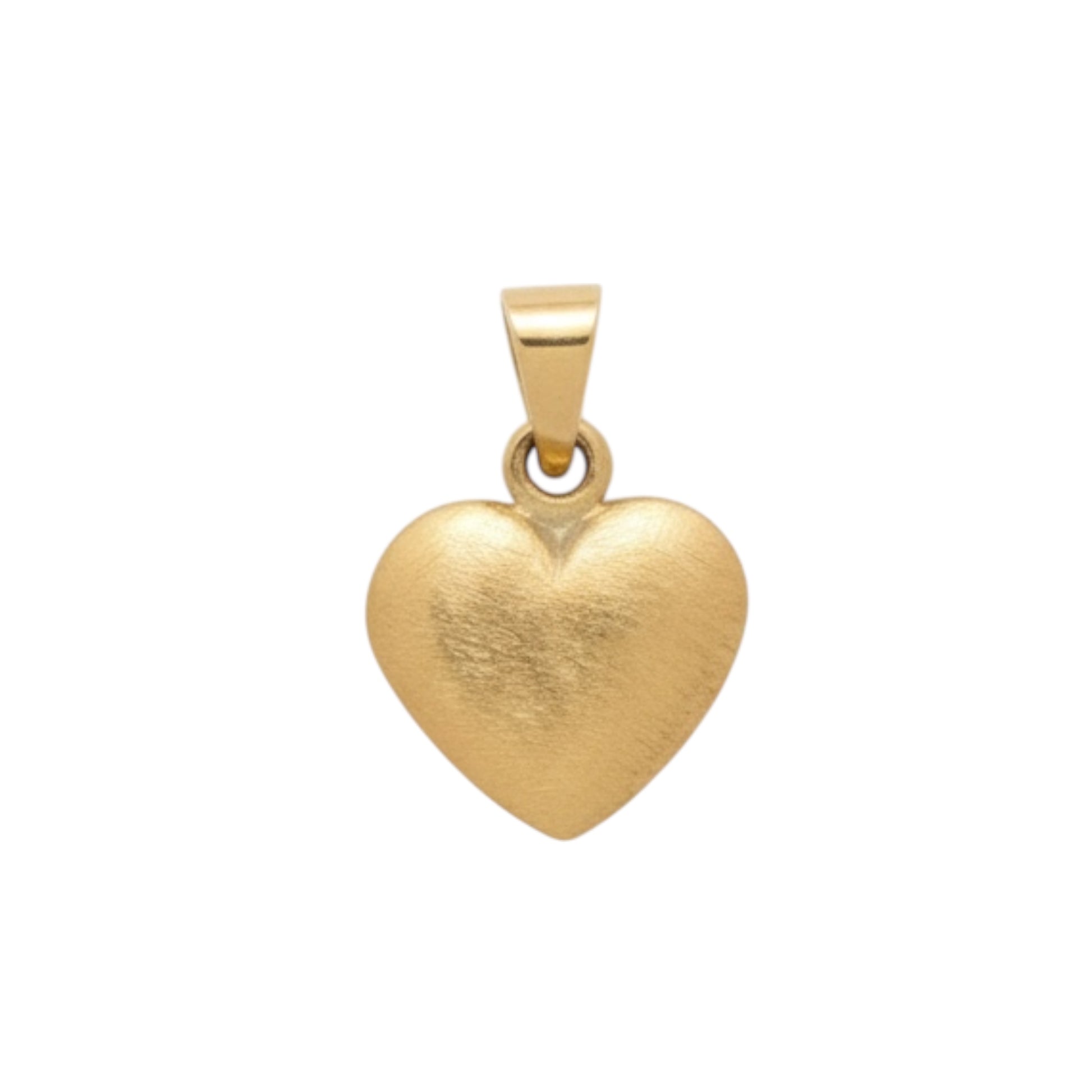 14 karat massivt guldhjerte vedhæng. Vedhænget har en mat overflade og en flad facon.