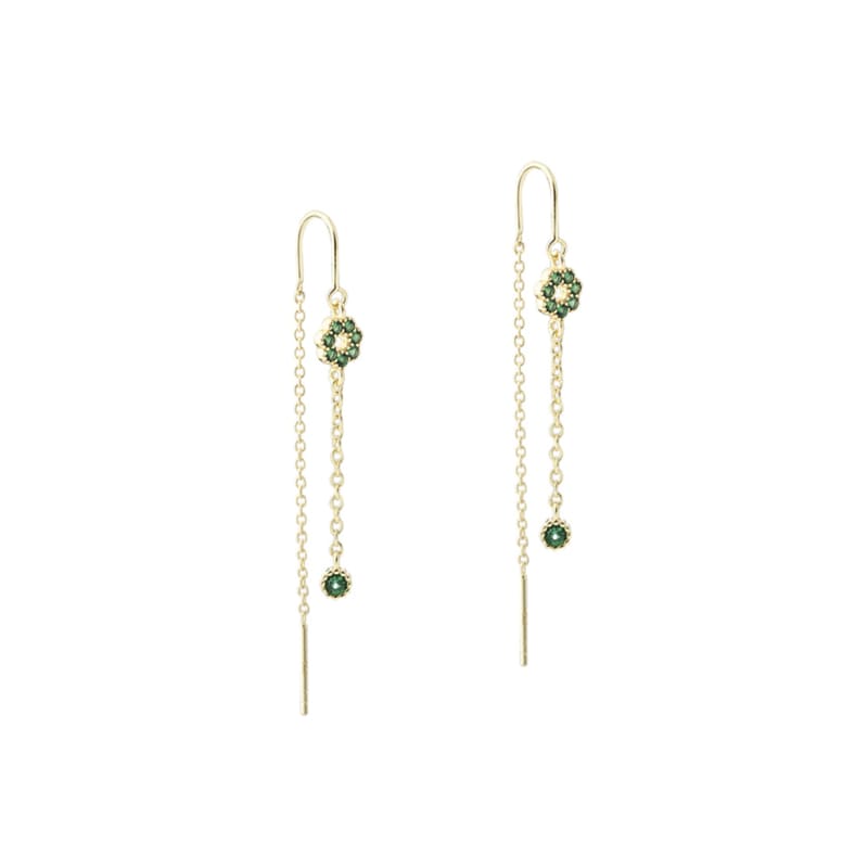 Øreringene er fremstillet af forgyldt sølv og prydet med smukke grønne blomster.