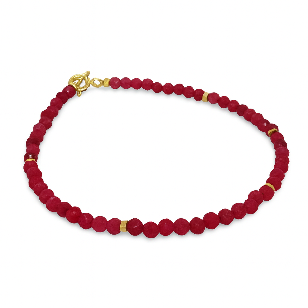 Armbåndet består af smukke rubiner med guldstykker af 14kt guld.