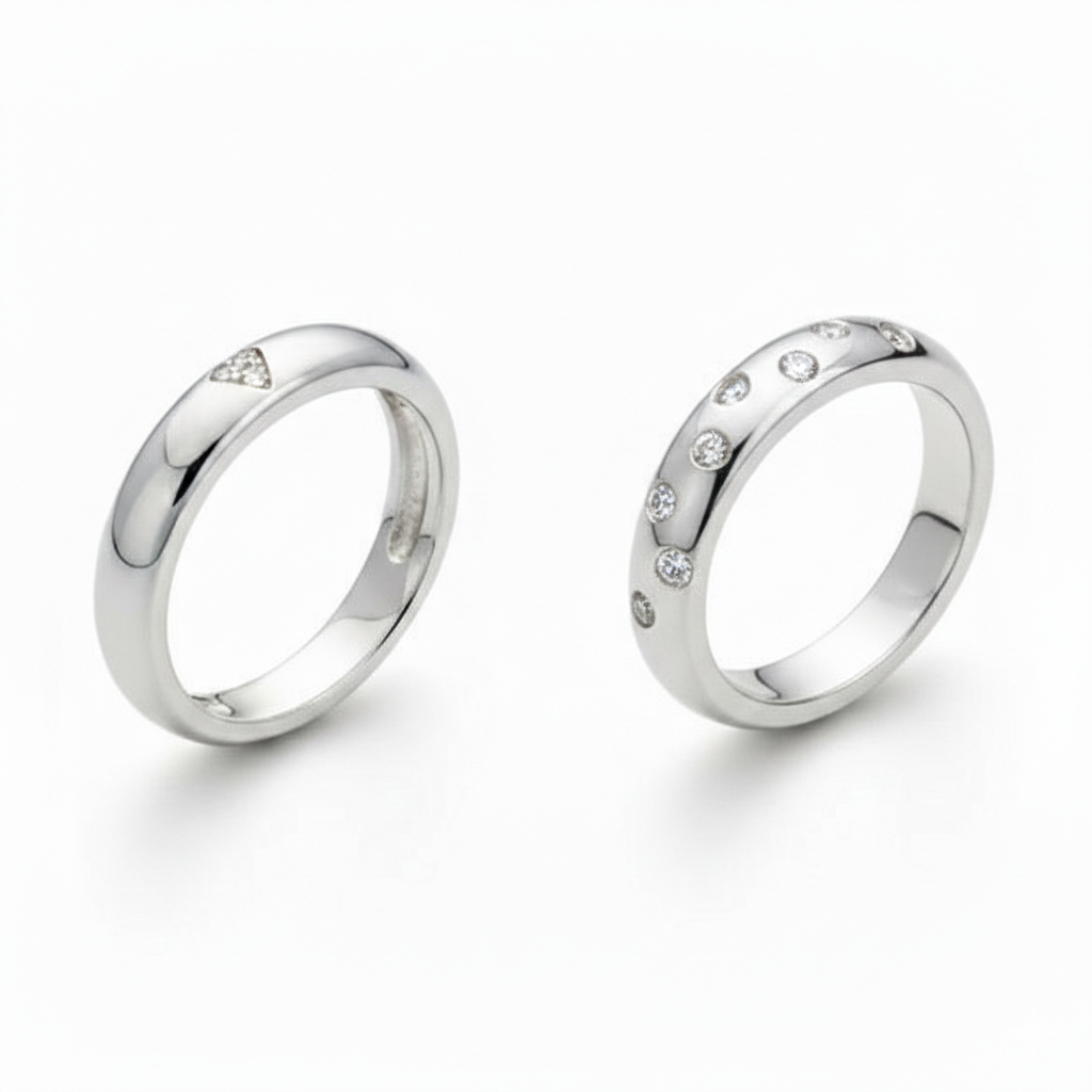 Denne vielsesring i 14 karat hvidguld er skabt med to forskellige udtryk, så du selv kan vælge, hvilken side der skal vende opad. Ringen har en blød, afrundet profil, der gør den behagelig at bære hver dag.