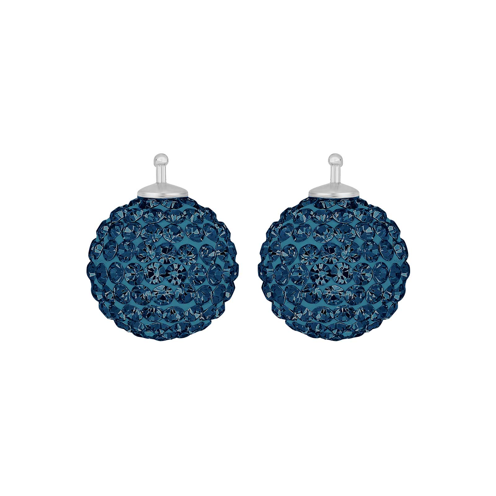 Øreringene er fremstillet af rhodineret sterlingsølv med syntetisk pavekugle i mørk blå farve.