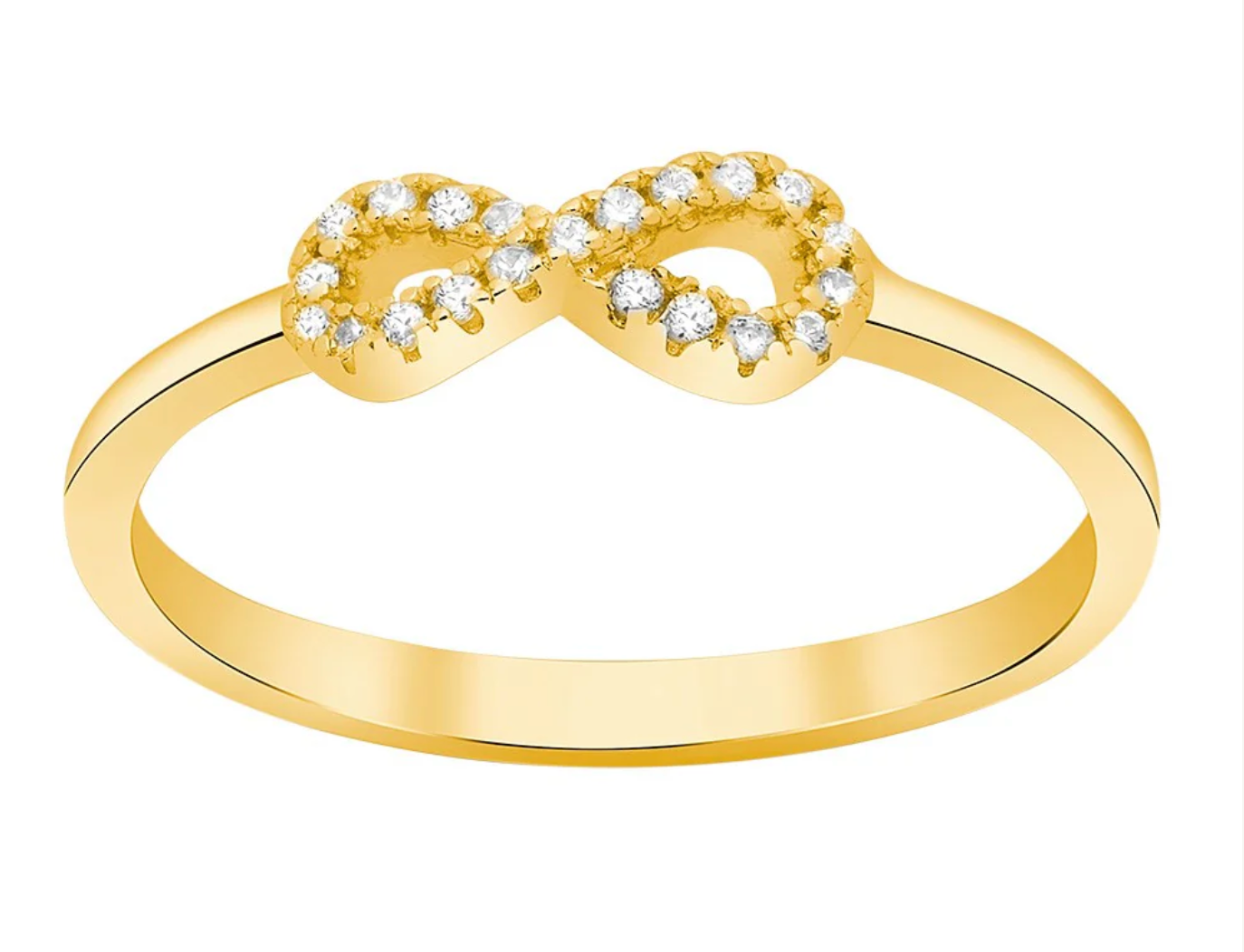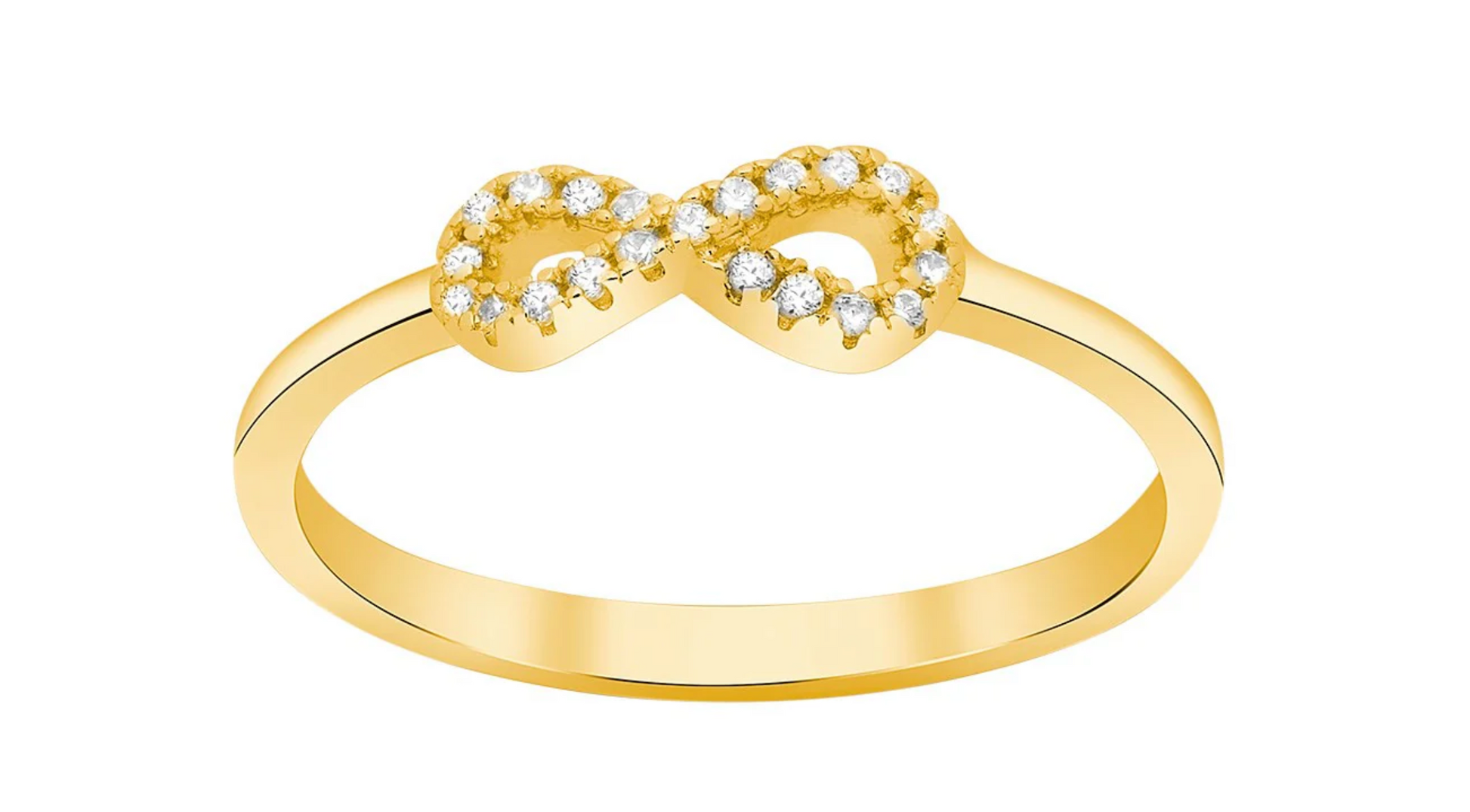 Denne fine, tryllebindende ring, fra vores Agna serie, udstråler drømmende balance. Uendelighedstegnet understreges af de funklende zirkonia sten, som giver ringen en ubesværet skønhed. Den forgyldte sølvrings enkelthed gør den ideel til kombination med andre, måske mere prangende ringe, så brug den i sin enkelthed til hverdag, eller style den med andre ringe for et mere festligt udtryk.
