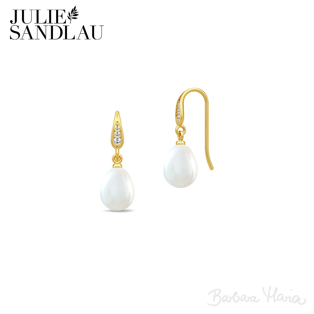 Julie Sandlau Ocean ørering i 22 karat forgyldt sterlingsølv med hvid ferskvandsperle og zirkoner.
