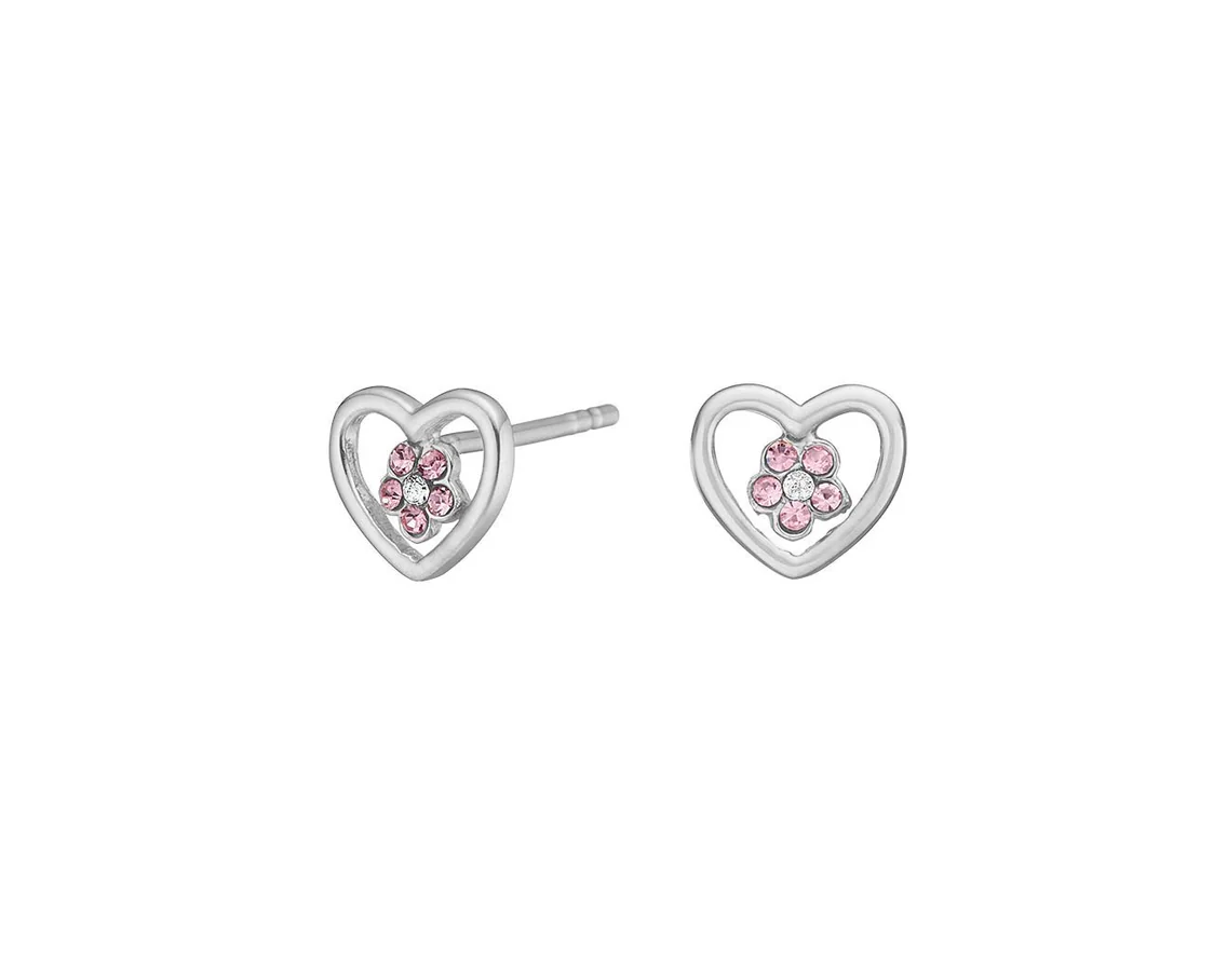 Rhod. sølvørestikker hjerter og lyserøde zirkoner.