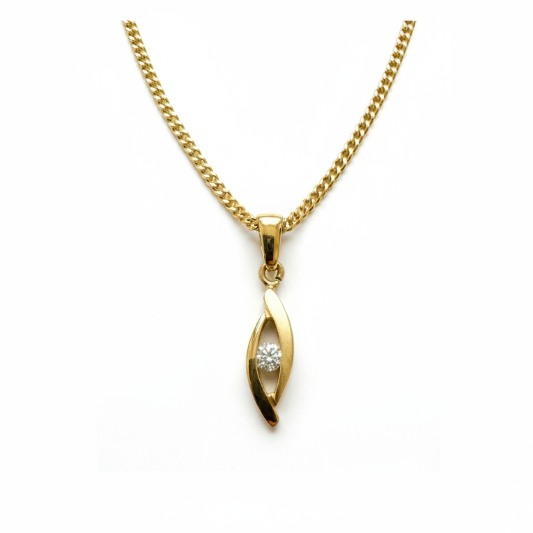 8 kt. Guldvedhæng med Zirkon – Mat & Blank Kontrast